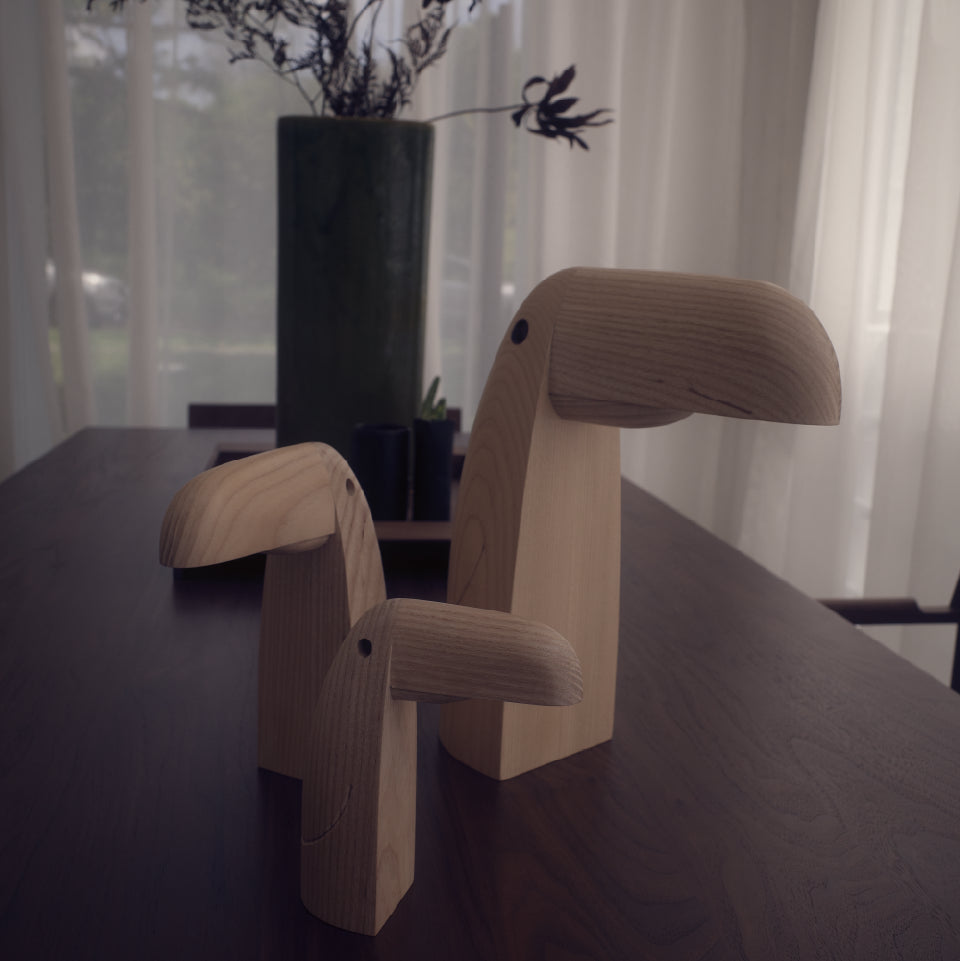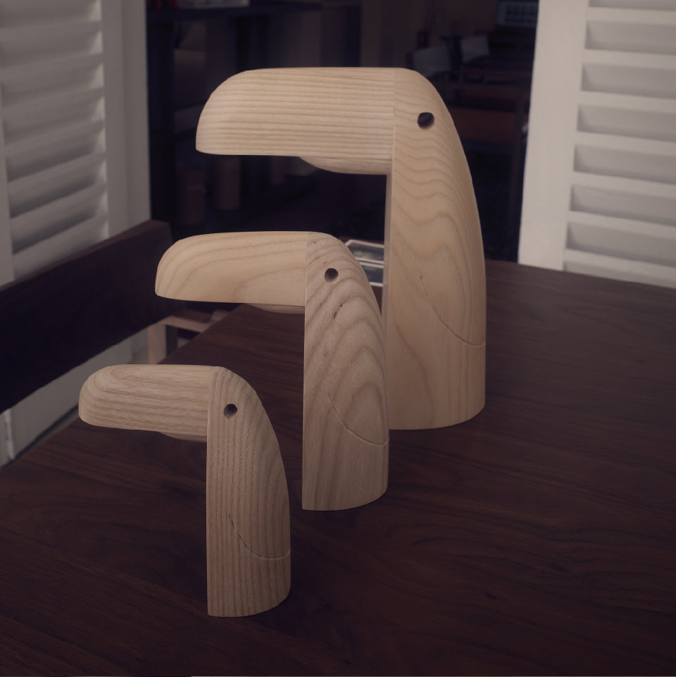 Hand-carved from solid white ash, this sculpture of a hornbill captures the quiet strength and dignity of the iconic bird. With minimalist lines and subtle curves, the piece balances abstraction and recognition - an homage to Southeast Asia’s native wildlife through the lens of contemporary design.